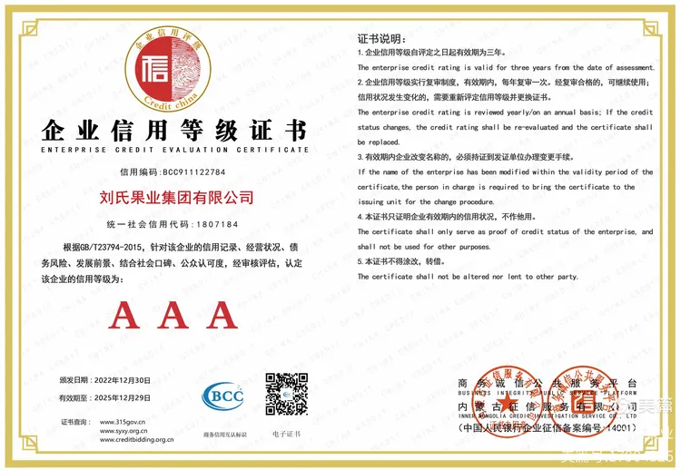 企业信用等级证书